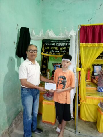 Phong và em trai nhận tiền giúp đở của Quỹ