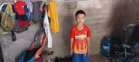 His father is suffered from mental illness, often wanders alone in the neighborhood. His mother has cancer and currently undergoing chemo treatment far away in Hanoi. Huy and his sister (grade 4) lives with his grandpa, who is retired, elderly and a main caregiver for his disable uncle. The uncle suffer from brain disorder from youth. Their only source of income is grandpa’s social allowance of $35/monthly.